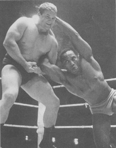 | Georges Gordienko applies an arm lever | Paul Vachon's backhammer | Gordon Nelson in an arm lever |