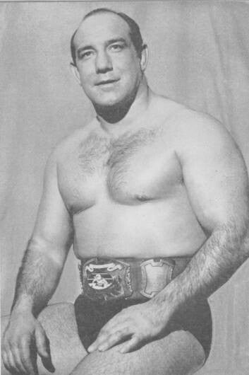 | With championship belt | Ready to wrestle | Johnny Allan's head chancery | Don Mendoza's hammerlock |