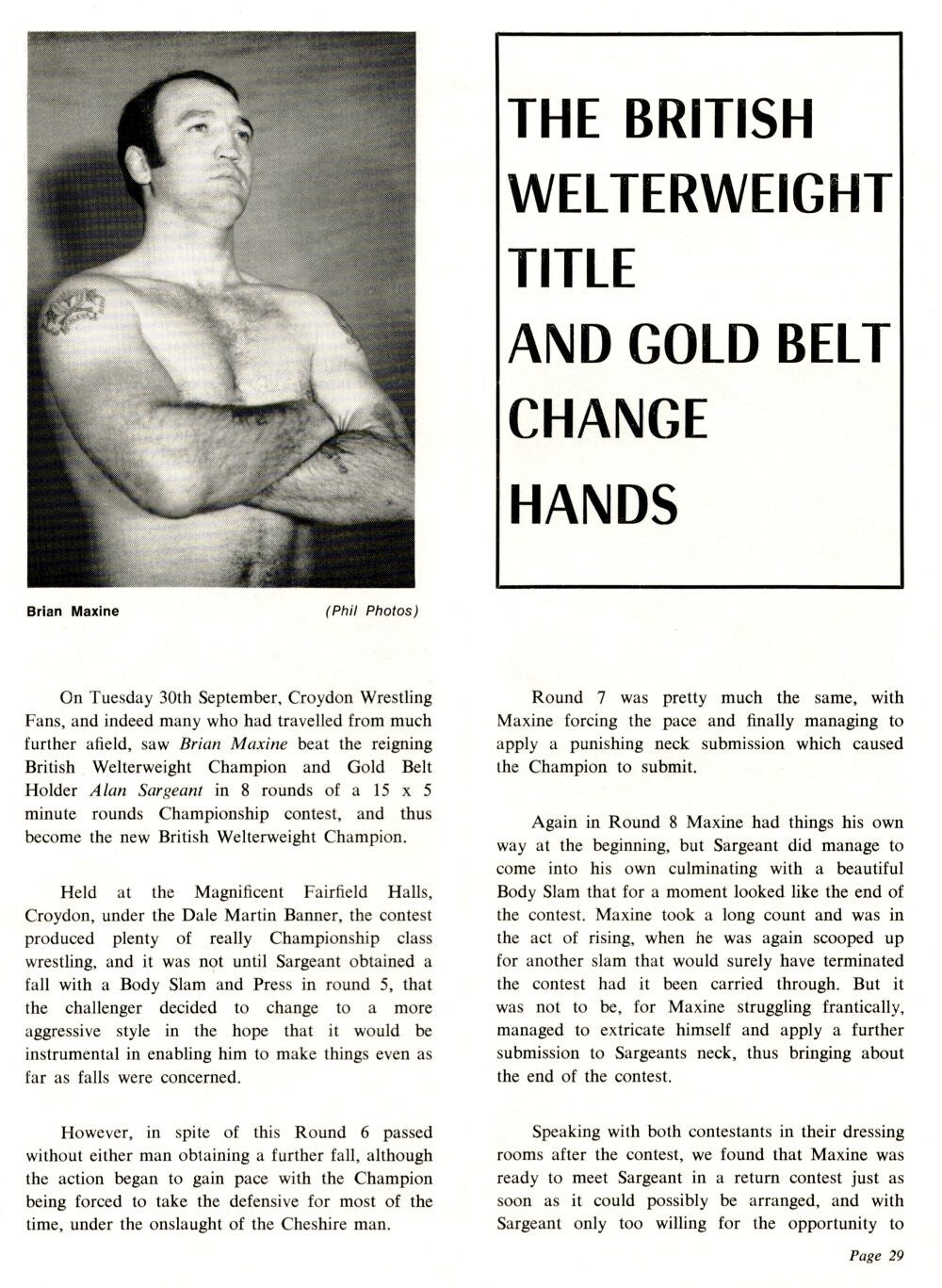 Brian Maxine's entry in "The Who's Who of Wrestling" Article from "The Wrestler" March 1967