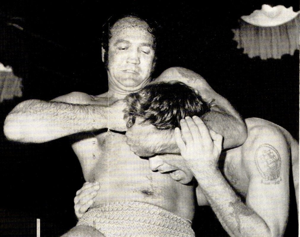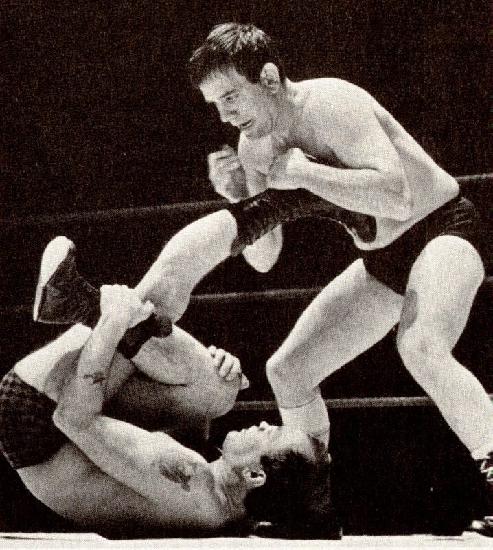 Knee drop on Eddie Capelli Article from "The Wrestler" May 1968