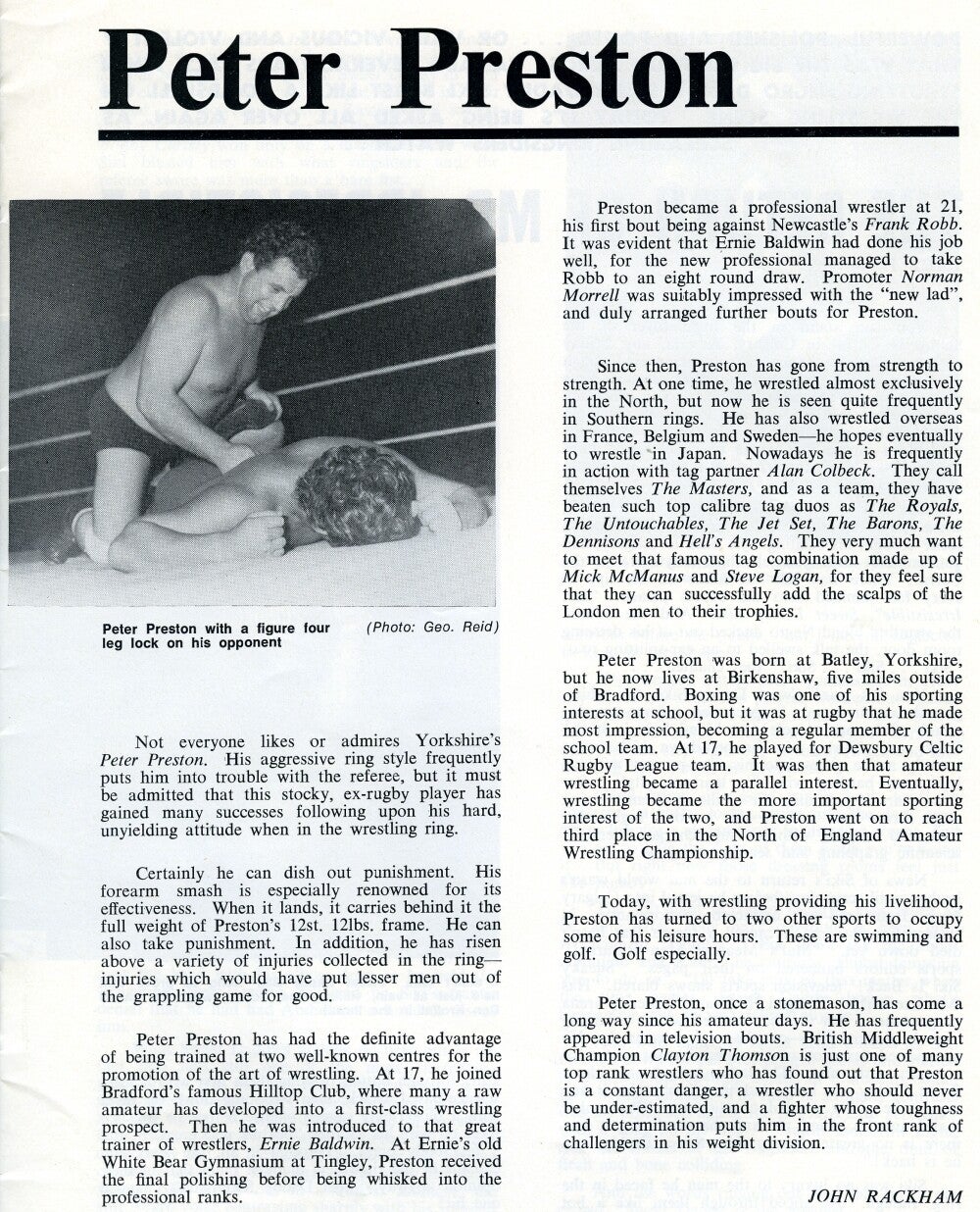 Peter Preston's entry in "The Who's Who of Wrestling"
