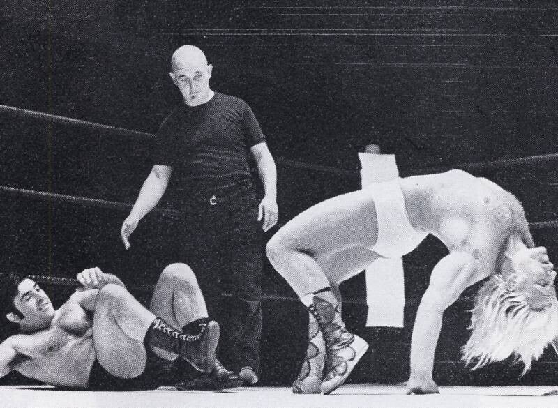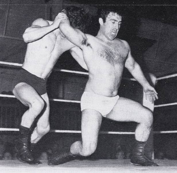 | Feature from "The Wrestler", October 1972 | Jon Cortez vaults out of Sargeant's Japanese armlock |